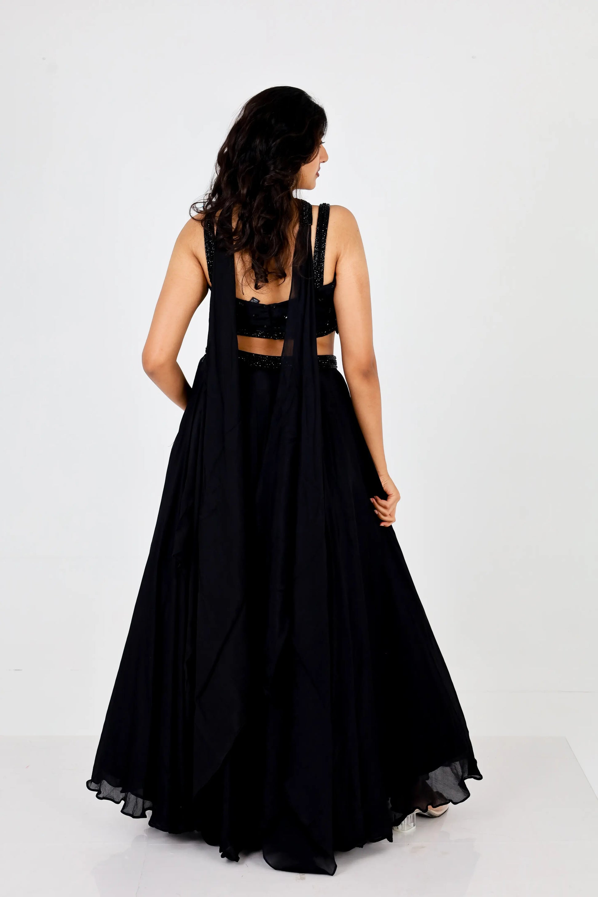 Black Sequin Embellished Crop Top Lehenga Set