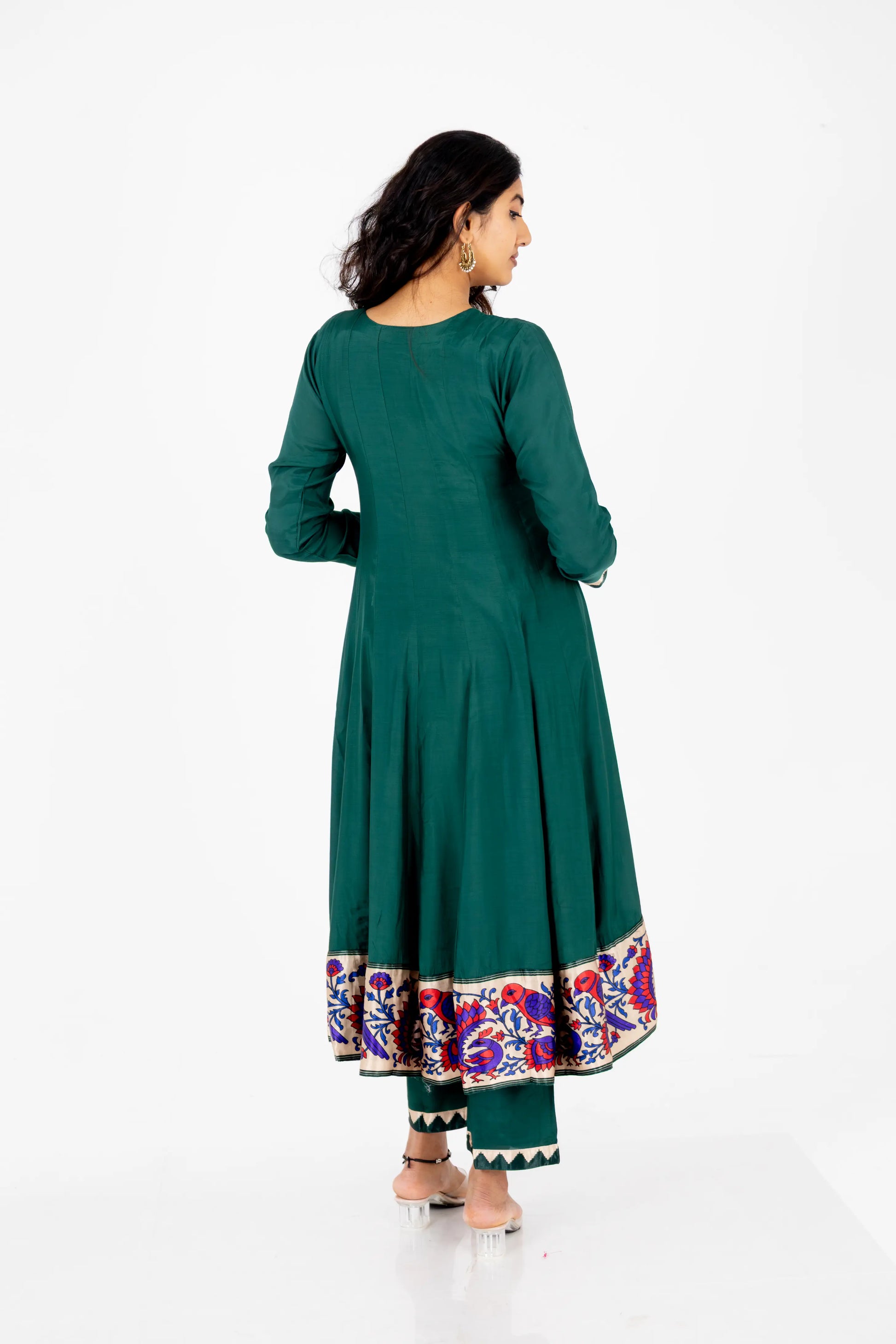 Emerald Green Embroidered Silk Suit Set with Banarasi Dupatta