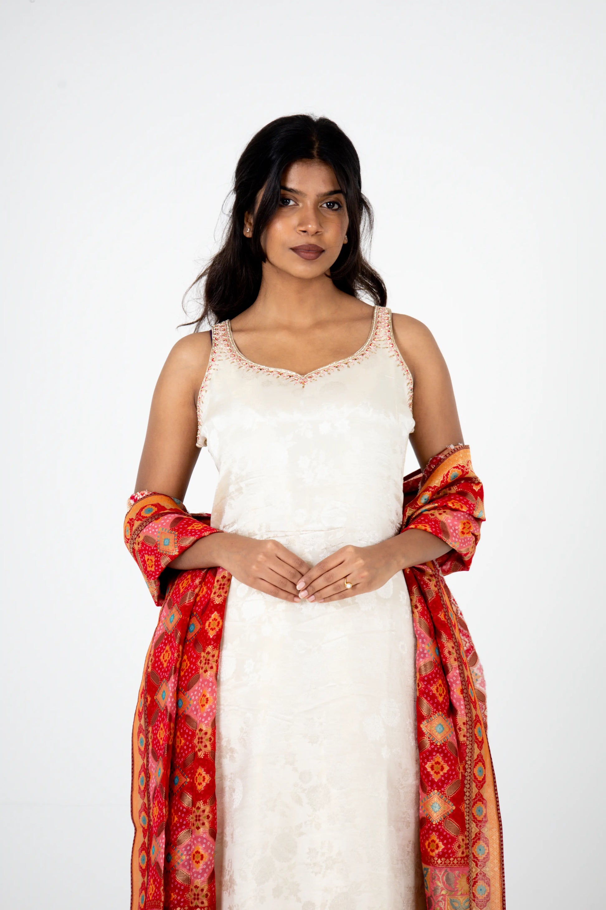 Ivory Embroidered Kurta Set with Vibrant Patola Dupatta