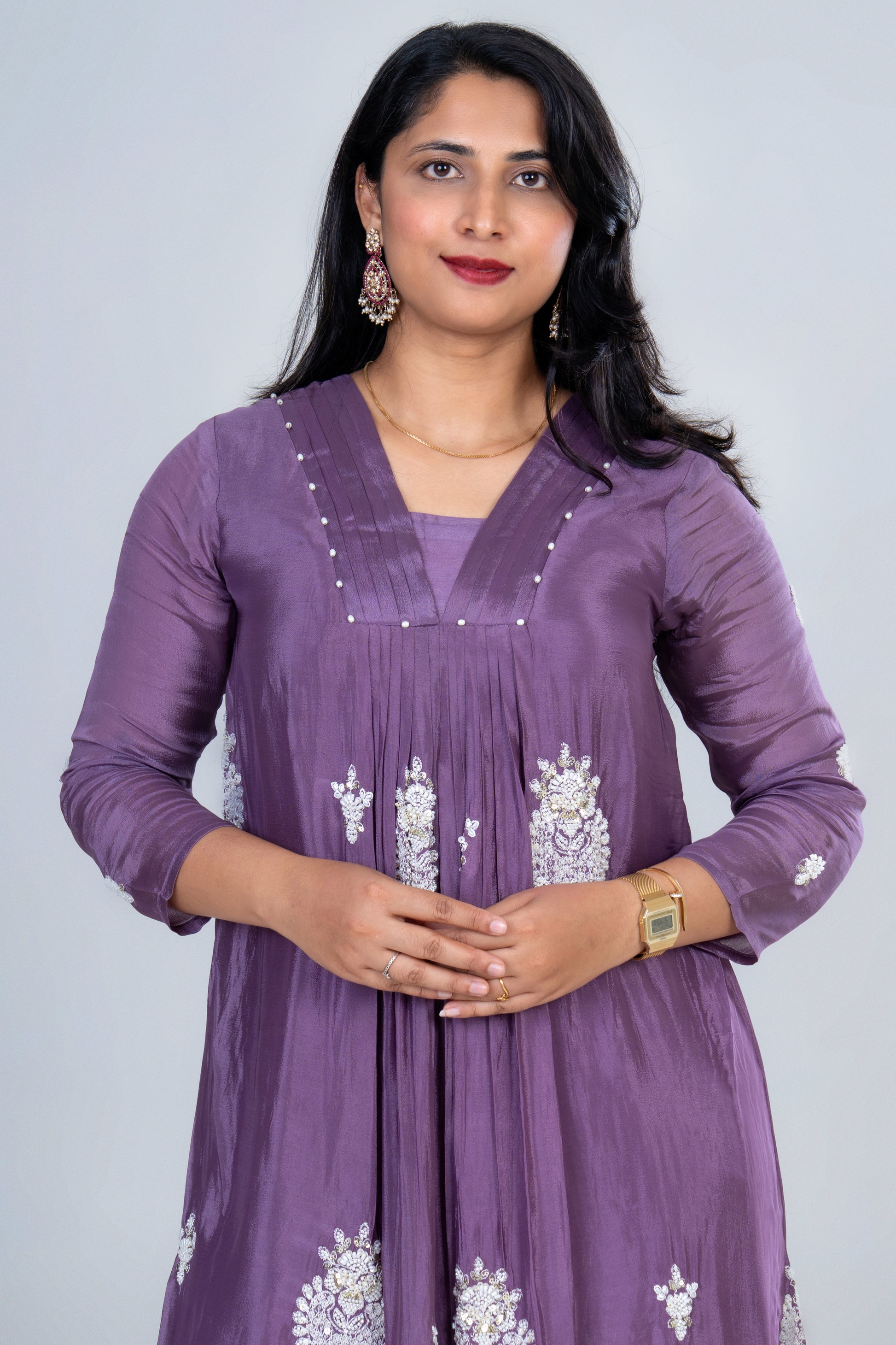 Lavender Grace Hand-Embroidered Anarkali Suit Set